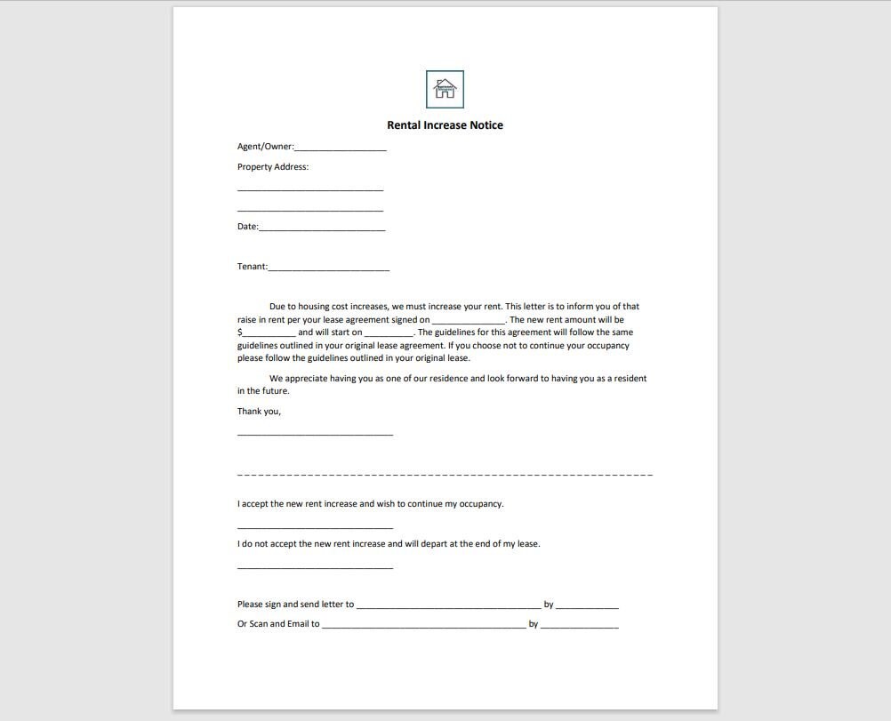 Free Rent Increase Notice Letter Sample Pdf Word Eforms